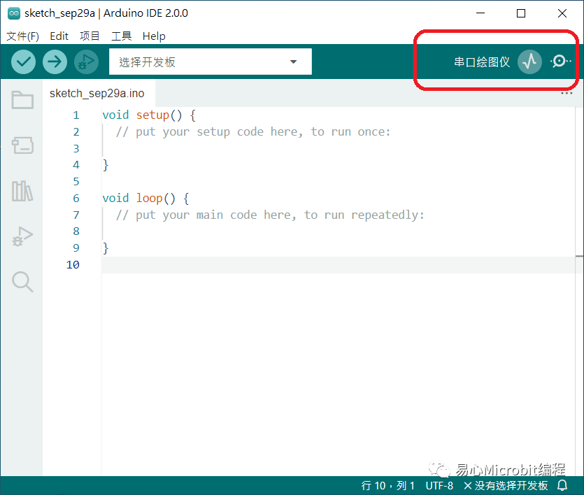 Trong hộp màu đỏ, nhấp vào biểu tượng ECG để mở máy vẽ nối tiếp và nhấp vào biểu tượng kính lúp để mở màn hình nối tiếp.