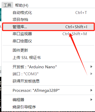 1. Mở phần mềm Arduino IDE, tìm menu "Project" trên thanh thao tác phía trên và mở menu "Project". Tìm tùy chọn "Quản lý thư viện".