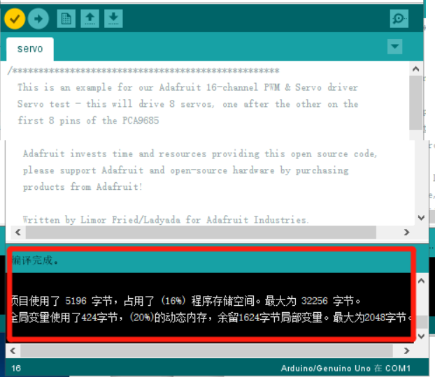 Sau đó biên dịch ví dụ. Nếu IDE không báo lỗi và biên dịch thành công, điều đó có nghĩa là thư viện mở rộng đã được cài đặt thành công.