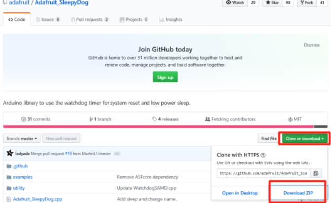 Chúng tôi sử dụng thư viện SleepyDog của Adafruit làm ví dụ. Liên kết trang web: [ 1] .
