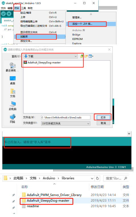 Sau đó di chuyển thư mục đã giải nén có tên "Adafruit_SleepyDog-master" đến "Documents>Arduino>libraries" và đổi tên thành "Adafruit_SleepyDog.