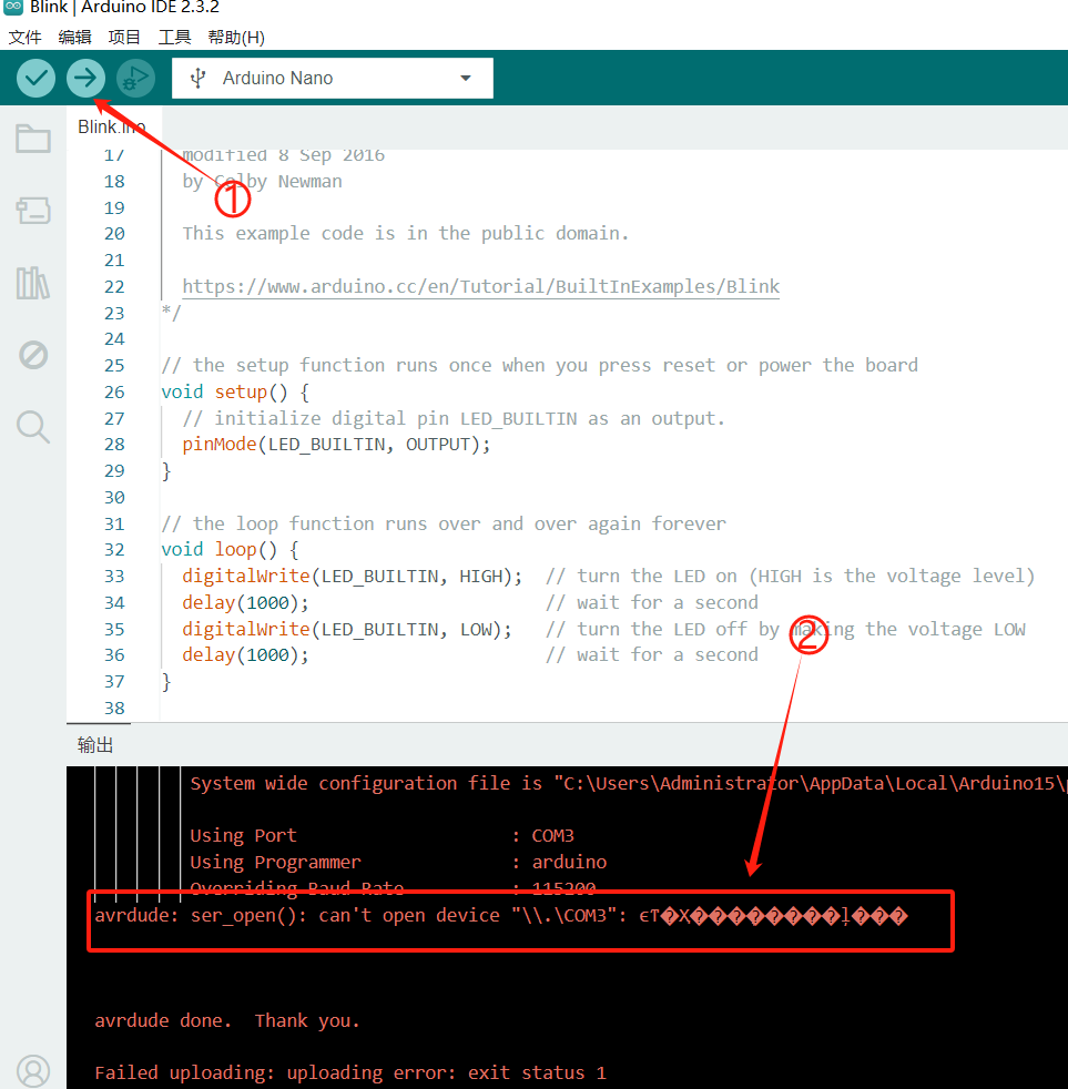 Mã không thể được tải thành công lên bo mạch Arduino