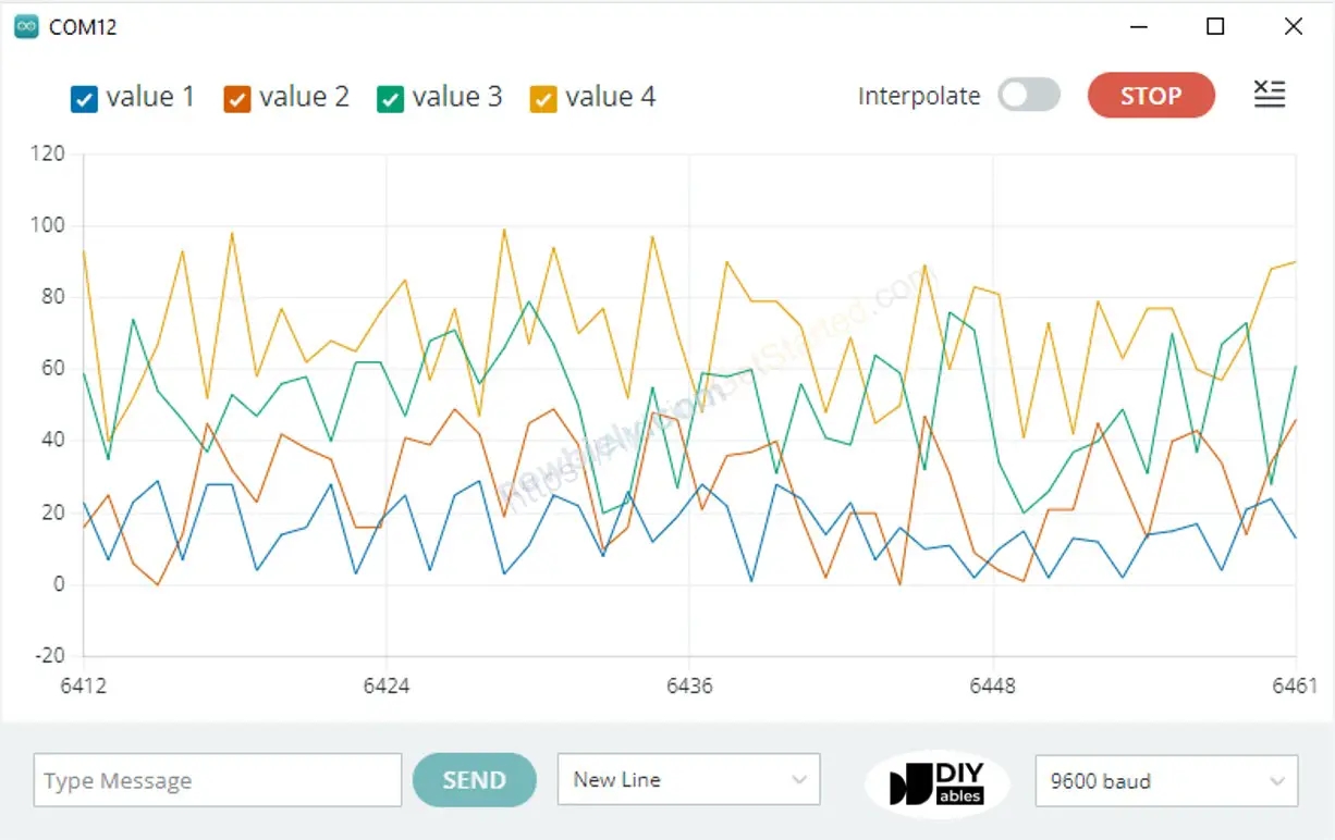 6. Serial Plotter Công cụ mới này khá mạnh mẽ. Nó có thể đồng thời quan sát sự thay đổi của nhiều bộ biến trên bo mạch phát triển Arduino và quan sát sự thay đổi giá trị theo quỹ đạo thời gian. Điều này rất phù hợp để sử dụng trong những trường hợp như hiệu chuẩn cảm biến hoặc so sánh giá trị.
