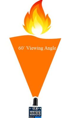 Góc phát hiện của mô-đun cảm biến ngọn lửa là khoảng 60 độ.