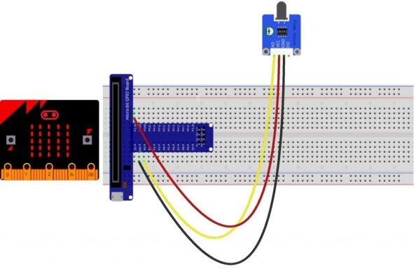 Cảm biến ngọn lửa (Triode thu hồng ngoại) được sử dụng đặc biệt trên robot để tìm nguồn lửa. Cảm biến này có độ nhạy cao với ngọn lửa. Cảm biến ngọn lửa được chế tạo dựa trên nguyên lý tia hồng ngoại rất nhạy cảm với ngọn lửa. Nó có một ống thu hồng ngoại để phát hiện lửa, sau đó chuyển đổi độ sáng của ngọn lửa thành tín hiệu mức dao động. Trong bài học này, chúng ta sẽ trình bày cách đọc giá trị của cảm biến ngọn lửa, sau đó điều khiển âm thanh còi thông qua việc nhập tín hiệu mức dao động vào bảng micro:bit.