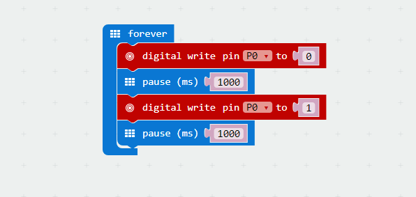 Kết nối giao diện Relay với P0, sau đó tải mã vào Micro:bit, bạn sẽ nghe thấy âm thanh bật/tắt cơ học từ rơle cứ sau 1 giây, nếu bạn kết nối một số thiết bị điện áp cao khác với đầu ra của rơle thì chúng ta sẽ có thể điều khiển bật/tắt thiết bị này.