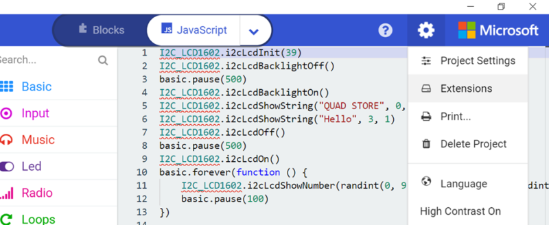 https://github.com/makecode-extensions/i2cLCD1602
