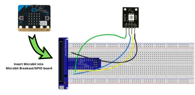 Lưu ý: Khi nối dây RGB, mỗi chân màu vẫn cần một điện trở giới hạn dòng điện phù hợp với chân I/O của micro:bit mà bạn dự định sử dụng để điều khiển nó, giống như bất kỳ đèn LED tiêu chuẩn nào. Trong dự án này, chúng tôi sử dụng Mô-đun RGB nên không cần thêm điện trở.