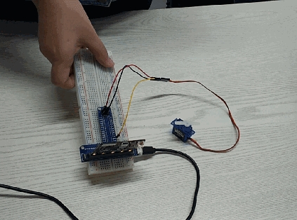 Khi bắt đầu chương trình, servo sẽ di chuyển đến 90 độ và sau đó phản ứng với hướng của micro:bit. Nếu bạn giữ micro:bit phẳng, servo sẽ ở góc 90 độ. Sau đó, nếu bạn nghiêng servo sang trái, nó sẽ di chuyển dưới 90 độ về giá trị 15. Nếu bạn di chuyển nó sang phải, servo sẽ di chuyển về phía 165.